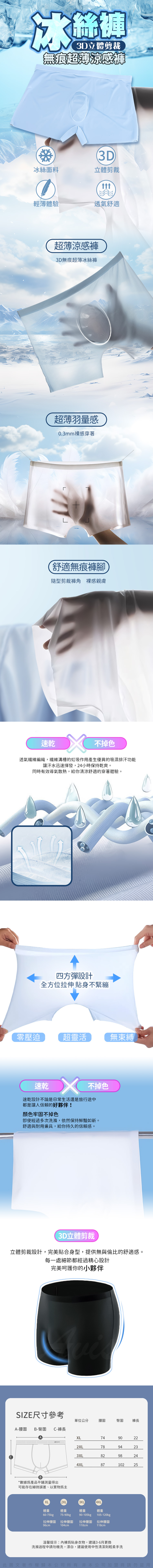 商品名稱:超輕薄涼爽無痕零觸感|男士冰絲內褲