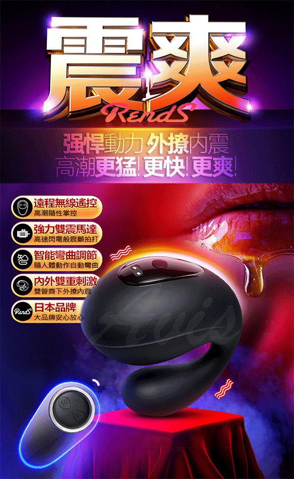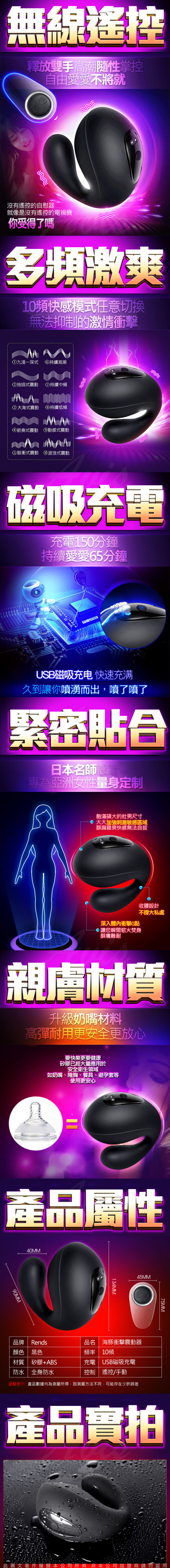 .商品功能:RENDS-海豚 10段變頻黑色衝擊摳G撩蒂遙控震動跳蛋