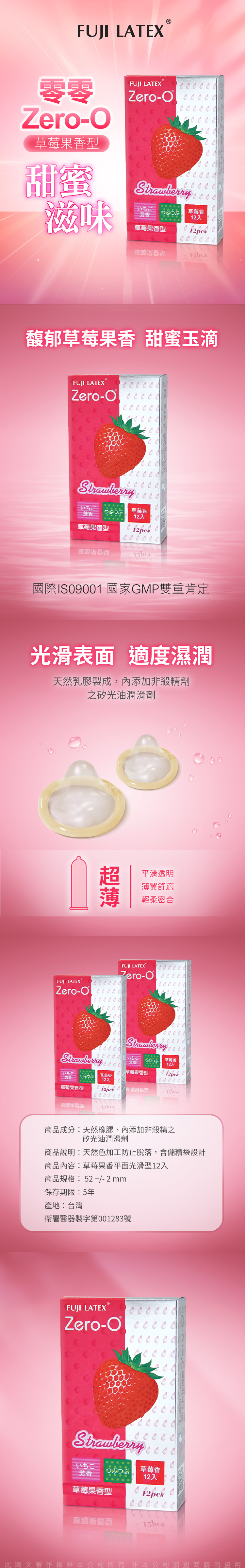 商品名稱:ZERO-0 零零系列|FUJI LATEX 衛生套 保險套|草莓果香型 12入