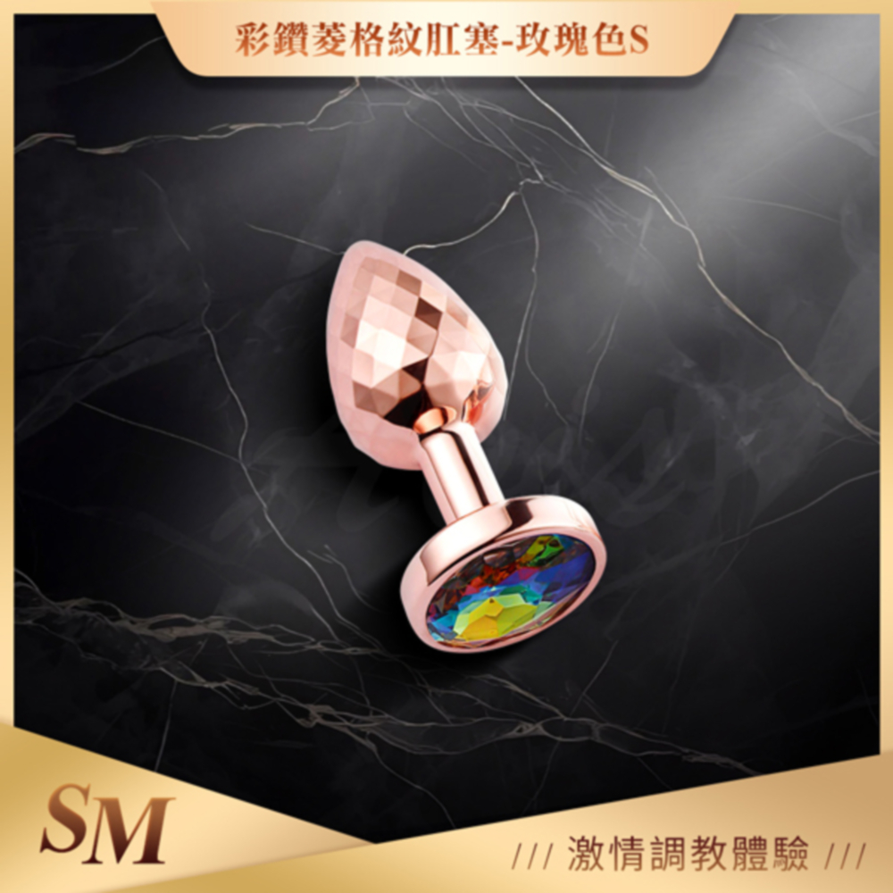 菱狀錐形|金屬後庭肛塞|小 玫瑰金彩色鑽
