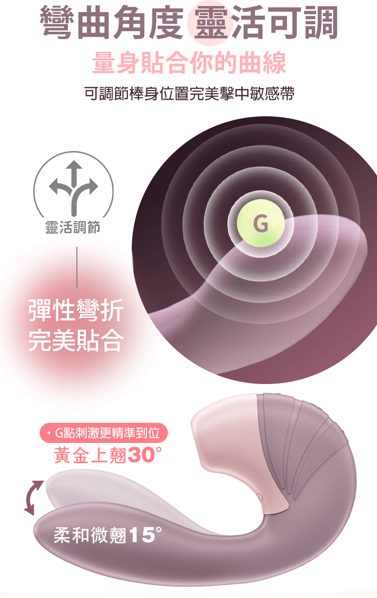 搭配 強勁震頻深入G點,同時喚醒內外雙重感受。