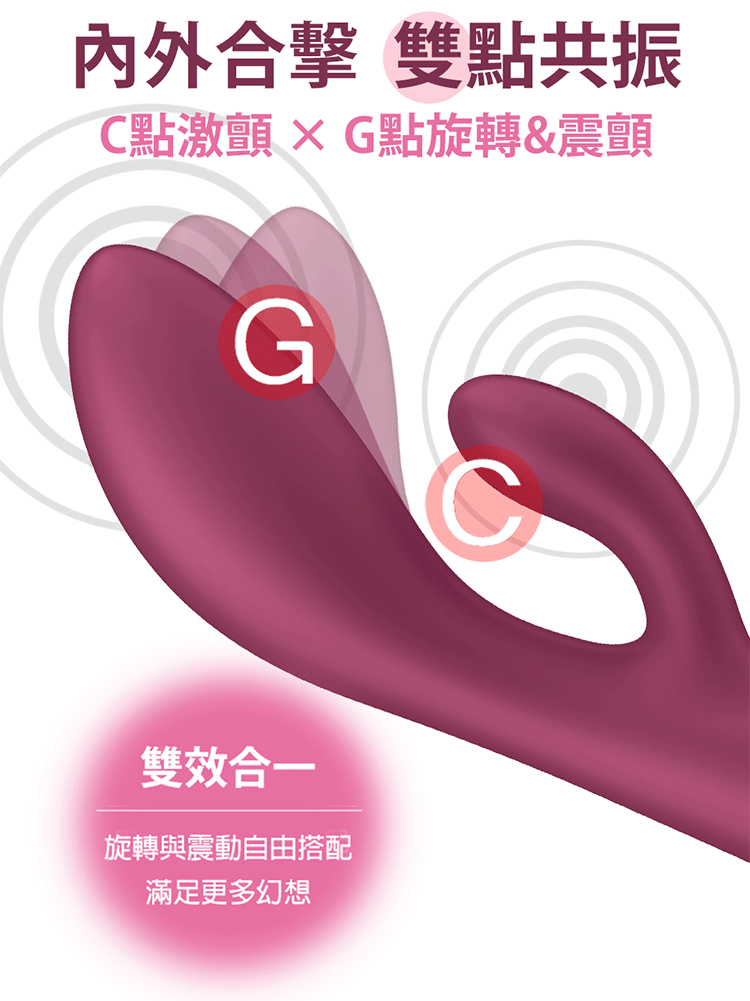 當旋轉與震動同時啟動,感受G點與C點的雙重共鳴,快感層層疊加。