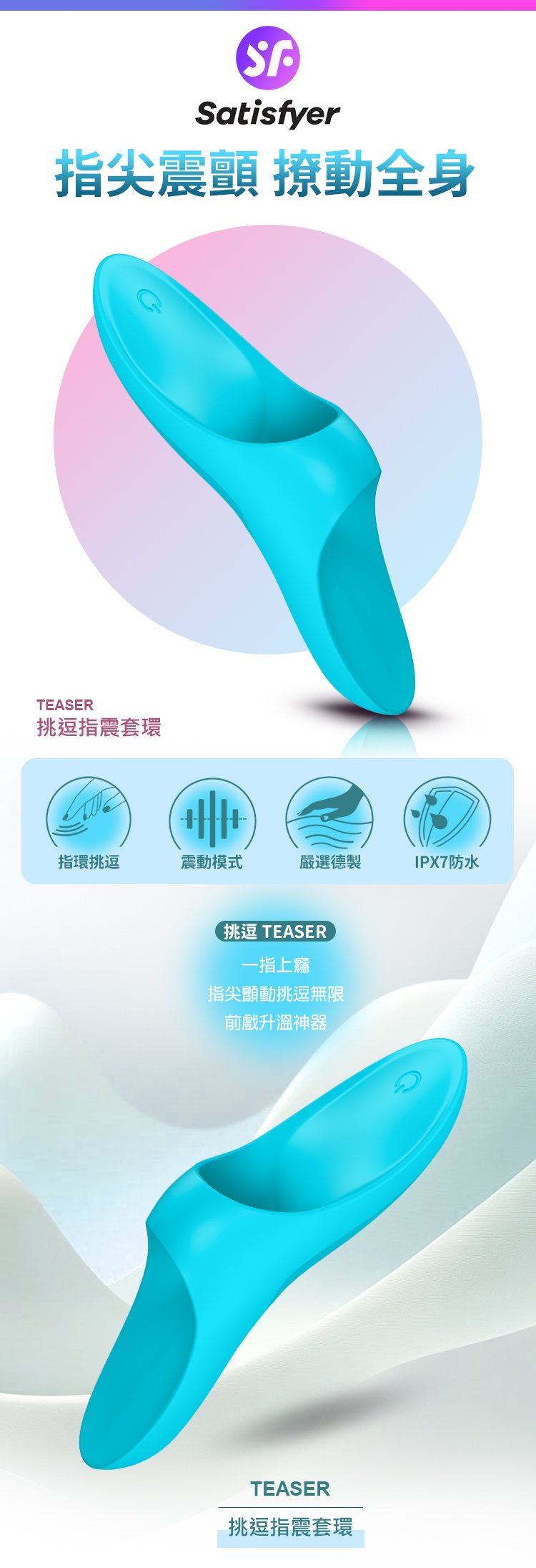 品名:Satisfyer|Teaser|挑逗 指震套環震動器 藍